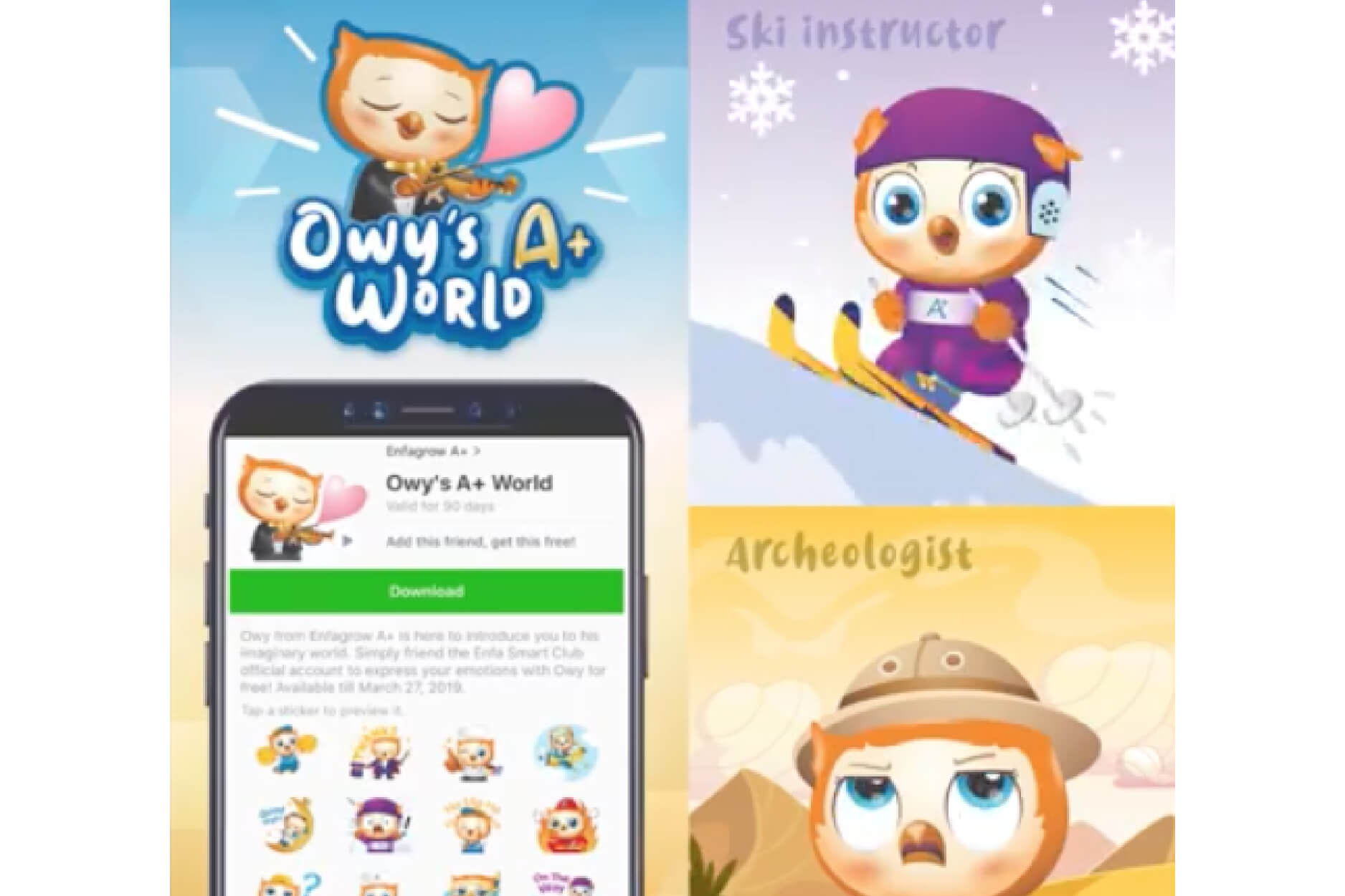 Line sticker is an indirect way to connect with mom target group. We create a collection of Owy mascot Sticker in a cute and communicative visual with movement. Owy represents Enfa powder milk product while features brand's offer "Readiness" for the kids. Each sticker design is based on each dream career for kids in the future.