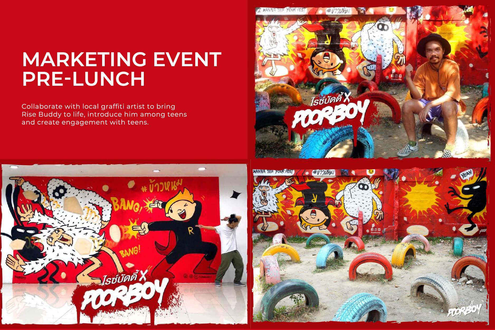 A unique packaging design not only attracts customers but Mr.Rise Buddy (Brand mascot) plays a role in connecting with teen target and has a place in their hearts. We also do the social media content which gain high engagement in only a few months after launch.